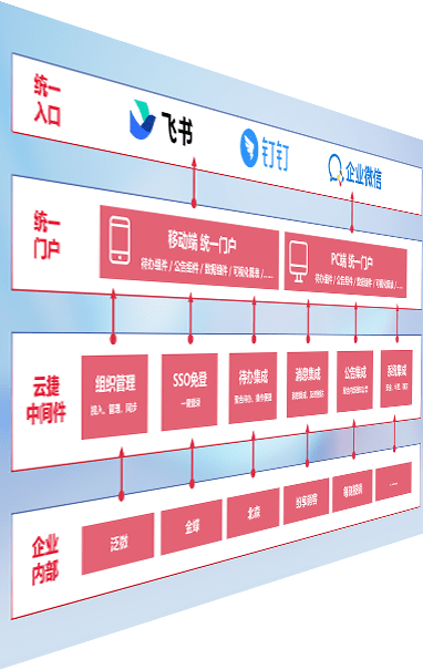 对协作平台提供支持服务,,支持企业应用与协作平台对接,,,,包含组织同步、、、消息集成、、待办集成等。。支持目前主流的协作平台:钉钉、、、、企微和飞书。。。